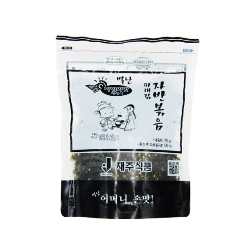 파래김자반(국내산)50%, 옥수수기름(외국산)30%, 참기름(외국산)5%, 들기름(외국산)5%, 백설탕4%, 볶음참깨4%, 정제염2%